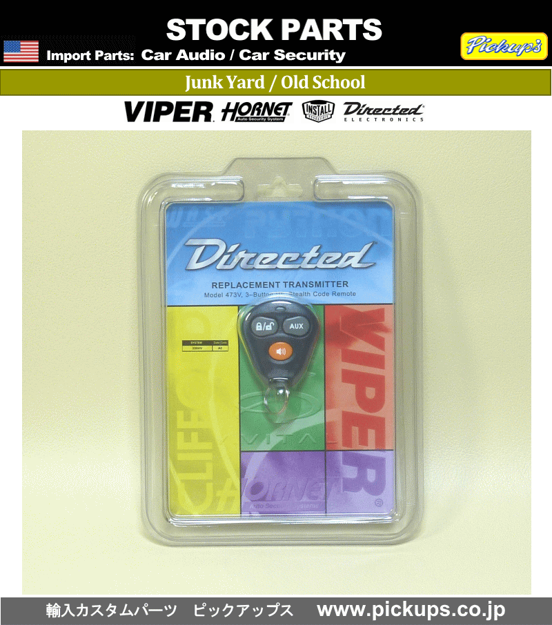 ご注意下さい。 殆ど1点限りの国内在庫品です。 無くなり次第終了します。 他でも販売しています。 事前に在庫確認をお願いします。 ![]() Global Headquarters 2351 J.Lawson Blvd. Orlando,FL32824 VIPER / Clifford / INSTALL アメリカでも入手困難な ヴィンテージ パーツです。 Import Parts since 1987 ピックアップス トランスミッター 1ウェイ・4ボタン DEI-474V ● 適合ベースユニット 560XV/650XV/850XV 160XV/210HV ■ メーカー DEI社純正のアメリカ仕様です。 ★★★ DEI社純正セキュリティ製品の 補修・交換・追加用パーツです。 単品・他社製品には 使用できません。 ご注意下さい。 ■ コンディション 長期在庫の新品です。 現行のセキュリティ本体に 使用できない商品もあります。 ★★★ 製造・販売が終了してから かなり時間が経過した製品です。 現地アメリカでも、 入手はかなり困難な 希少品・貴重品です。 構成内容 画像が全てです。 慎重にご確認下さい。 ■ 販売数量 1個 ★ 取付説明書 製品に添付された英語版のみです。 添付されない製品もあります。 日本語の取付説明書 添付されません 取り付けサポート 行っておりません。 取付実績の有る 専門ショップの方にお勧めします。 ご了承下さい。 ■■■ お問い合わせ、ご注文方法は コノページの下をご覧下さい。 参考資料 長く更新していません。 パソコンでご覧下さい。 ![]() 総合インデックス ★ 保証は有りません。 新品・中古品に関わらず 初期不良も含めて保証はありません。 ベースユニットなど 構成品の全てが保証対象外です。 未使用品(新品)は未通電です。 動作確認は行っていません。 リモコン電池 製品付属品・リモコン単品を含め 電池交換が必要です。 電池の販売は行っていません。 又、 リモコンの登録に関しても サポートしていません。 十分ご注意下さい。 ■ 出荷後は 返品・交換はお受けできません。 慎重にご検討下さい。 ★★★ 出荷前に 破損などは目視検査をしています。 輸送中の破損に関しては 運送会社とご相談下さい。 ◆ 業販価格の設定はありません。 ご了承ください。 ■ 東京からの送料が必要です。 下表をご参照下さい。 ■■■ お問い合わせ、ご注文方法は コノページの下をご覧下さい。 ■ 新品と中古品があります。 長期在庫品のため、保証は有りません。 ■ 【 新品 】 未使用の新品です。 オーディオ・セキュリティ製品は 動作確認をしていないため 未通電です。 ■ 【 中古品 】 使用状況は様々です。 状態・程度 感覚的な判断となるため 表記しません。 現品を優先します。 ■ 【 出荷前検品 】 破損・欠品は検品を行います。 オーディオ・セキュリティ製品は 通電による動作検品は行いません。 ■ 【 画像 】 メーカー・代理店の画像が含まれます。 現品と多少異なる場合があります。 イメージとしてご覧下さい。 【 お願い 】 ★ 新品・中古品共に ノークレームでお願いします。 返品・交換は 一切お受けできません。 ● その他の パーツ 弊社ホームページをご参照下さい。 www.pickups.co.jp 輸入カスタムパーツ ピックアップス ■■■■ ![]() 在庫確認などにご利用下さい。 ★ お問い合わせ内容について 適合車種等 イモビライザー バイパスモジュール、 ドアロック インターフェースなど 一部の車種別商品を除いて 適合車種の設定は有りません。 このため、 ご質問いただいてもお答えできません。 あらかじめご了承下さい。 取り付けなどをはじめ 技術的なお答えはできません。 ご了承下さい。 ご注文方法・ご注文フォームなどは こちらをご参照下さい。