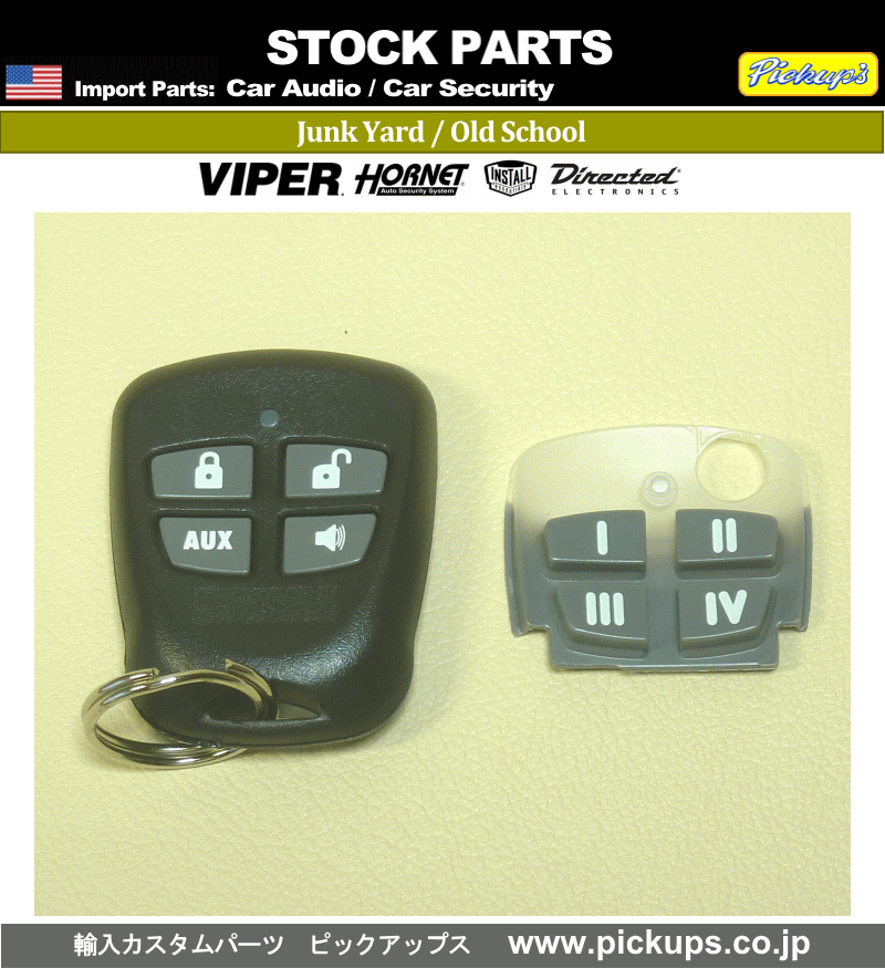 ご注意下さい。 殆ど1点限りの国内在庫品です。 無くなり次第終了します。 他でも販売しています。 事前に在庫確認をお願いします。 ![]() Global Headquarters 2351 J.Lawson Blvd. Orlando,FL32824 VIPER / Clifford / INSTALL アメリカでも入手困難な ヴィンテージ パーツです。 Import Parts since 1987 ピックアップス トランスミッター 1ウェイ・4ボタン DEI-476T ● 434MHZ スペアーパッド付き ■ メーカー DEI社純正のアメリカ仕様です。 ★★★ DEI社純正セキュリティ製品の 補修・交換・追加用パーツです。 単品・他社製品には 使用できません。 ご注意下さい。 ■ コンディション 長期在庫の新品です。 現行のセキュリティ本体に 使用できない商品もあります。 ★★★ 製造・販売が終了してから かなり時間が経過した製品です。 現地アメリカでも、 入手はかなり困難な 希少品・貴重品です。 構成内容 画像が全てです。 慎重にご確認下さい。 ■ 販売数量 1個 ★ 取付説明書 製品に添付された英語版のみです。 添付されない製品もあります。 日本語の取付説明書 添付されません 取り付けサポート 行っておりません。 取付実績の有る 専門ショップの方にお勧めします。 ご了承下さい。 ■■■ お問い合わせ、ご注文方法は コノページの下をご覧下さい。 参考資料 長く更新していません。 パソコンでご覧下さい。 ![]() 総合インデックス ★ 保証は有りません。 新品・中古品に関わらず 初期不良も含めて保証はありません。 ベースユニットなど 構成品の全てが保証対象外です。 未使用品(新品)は未通電です。 動作確認は行っていません。 リモコン電池 製品付属品・リモコン単品を含め 電池交換が必要です。 電池の販売は行っていません。 又、 リモコンの登録に関しても サポートしていません。 十分ご注意下さい。 ■ 出荷後は 返品・交換はお受けできません。 慎重にご検討下さい。 ★★★ 出荷前に 破損などは目視検査をしています。 輸送中の破損に関しては 運送会社とご相談下さい。 ◆ 業販価格の設定はありません。 ご了承ください。 ■ 東京からの送料が必要です。 下表をご参照下さい。 ■■■ お問い合わせ、ご注文方法は コノページの下をご覧下さい。 ■ 新品と中古品があります。 長期在庫品のため、保証は有りません。 ■ 【 新品 】 未使用の新品です。 オーディオ・セキュリティ製品は 動作確認をしていないため 未通電です。 ■ 【 中古品 】 使用状況は様々です。 状態・程度 感覚的な判断となるため 表記しません。 現品を優先します。 ■ 【 出荷前検品 】 破損・欠品は検品を行います。 オーディオ・セキュリティ製品は 通電による動作検品は行いません。 ■ 【 画像 】 メーカー・代理店の画像が含まれます。 現品と多少異なる場合があります。 イメージとしてご覧下さい。 【 お願い 】 ★ 新品・中古品共に ノークレームでお願いします。 返品・交換は 一切お受けできません。 ● その他の パーツ 弊社ホームページをご参照下さい。 www.pickups.co.jp 輸入カスタムパーツ ピックアップス ■■■■ ![]() 在庫確認などにご利用下さい。 ★ お問い合わせ内容について 適合車種等 イモビライザー バイパスモジュール、 ドアロック インターフェースなど 一部の車種別商品を除いて 適合車種の設定は有りません。 このため、 ご質問いただいてもお答えできません。 あらかじめご了承下さい。 取り付けなどをはじめ 技術的なお答えはできません。 ご了承下さい。 ご注文方法・ご注文フォームなどは こちらをご参照下さい。