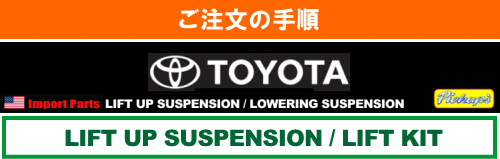 商品番号等の再確認 リフトアップ パーツ ![]() リフトアップ サスペンション 車種別キット: トヨタの目次はこちらです。 |