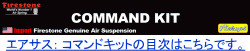 ★ ファイヤーストーン純正品について 現地価格の値上げや、為替レートの変動等により価格が変わります。 価格が表示されていない商品は、各々のパーツ別の目次でご確認ください。 この状態はしばらく続く可能性があります。 ご不便をお掛けし申し訳ありませんがよろしくお願いします。 【現在の価格】 コマンド キット: 価格・その他のご案内 ![]() ★価格が表示されていない場合は、こちらをご参照ください。 ![]() 国内在庫・納期についてのお問い合わせ その他の仕様など、お問い合わせはこちらです。エア サスペンション専用 |